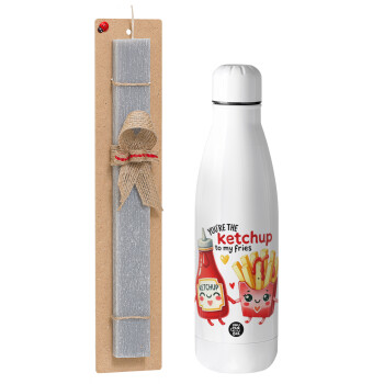 Ketchup To My Fries, Easter Set, metallic stainless thermos bottle (500ml) & scented flat Easter candle (30cm) (GRAY)