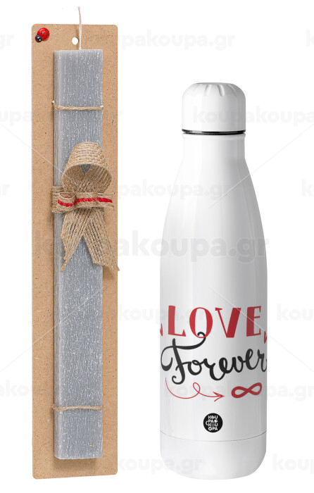 Love forever ∞, Easter Set, metallic stainless thermos bottle (500ml) & scented flat Easter candle (30cm) (GRAY)