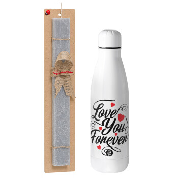 Love you forever, Easter Set, metallic stainless thermos bottle (500ml) & scented flat Easter candle (30cm) (GRAY)