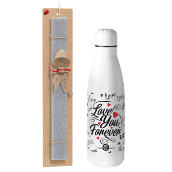 Love You Forever, Easter Set, metallic stainless thermos bottle (500ml) & scented flat Easter candle (30cm) (GRAY)