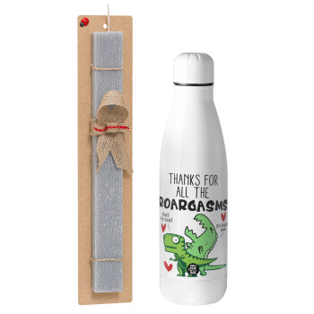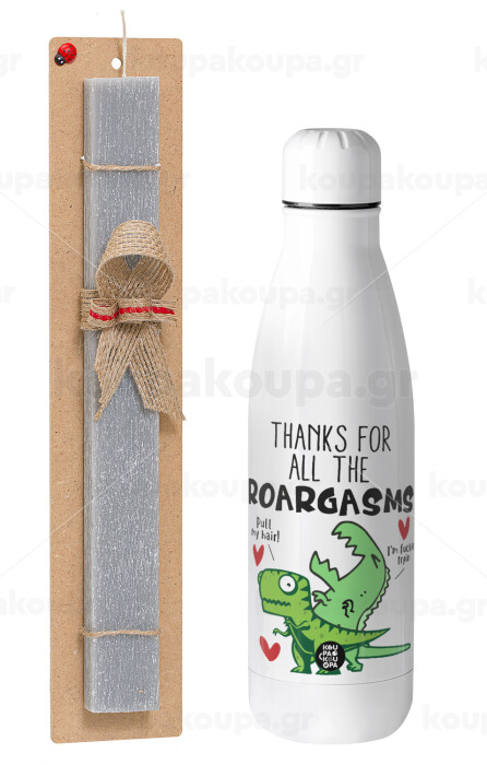 Thanks for all the ROARGASMS, Easter Set, metallic stainless thermos bottle (500ml) & scented flat Easter candle (30cm) (GRAY)