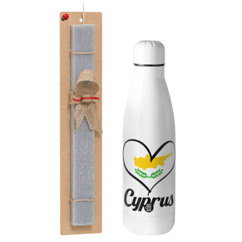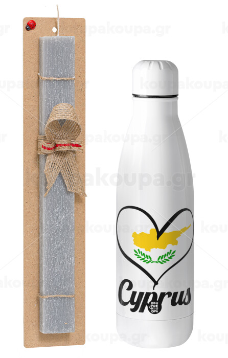 Cyprus flag, Easter Set, metallic stainless thermos bottle (500ml) & scented flat Easter candle (30cm) (GRAY)