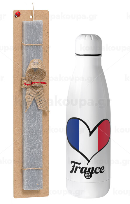 France flag, Easter Set, metallic stainless thermos bottle (500ml) & scented flat Easter candle (30cm) (GRAY)