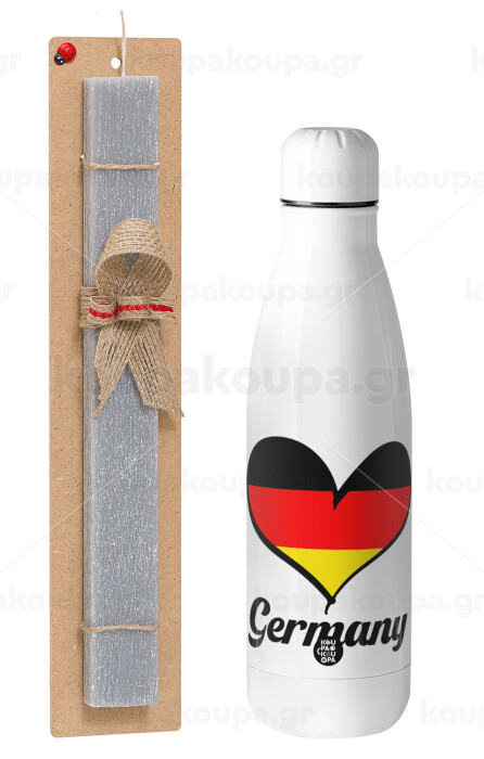 Germany flag, Easter Set, metallic stainless thermos bottle (500ml) & scented flat Easter candle (30cm) (GRAY)