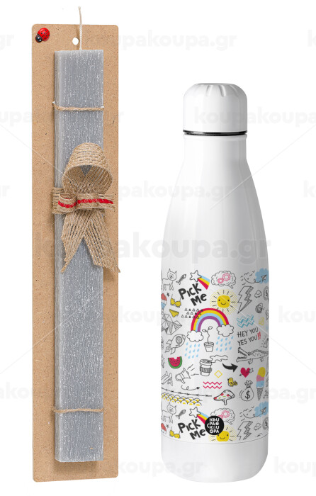 Doodle kids, Easter Set, metallic stainless thermos bottle (500ml) & scented flat Easter candle (30cm) (GRAY)
