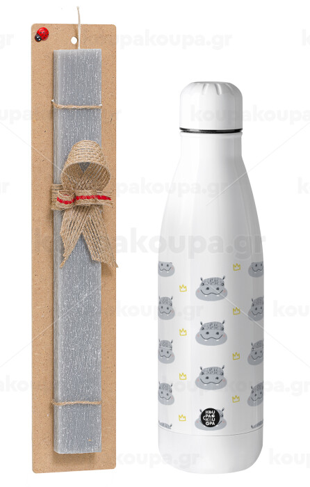 Hippo, Easter Set, metallic stainless thermos bottle (500ml) & scented flat Easter candle (30cm) (GRAY)