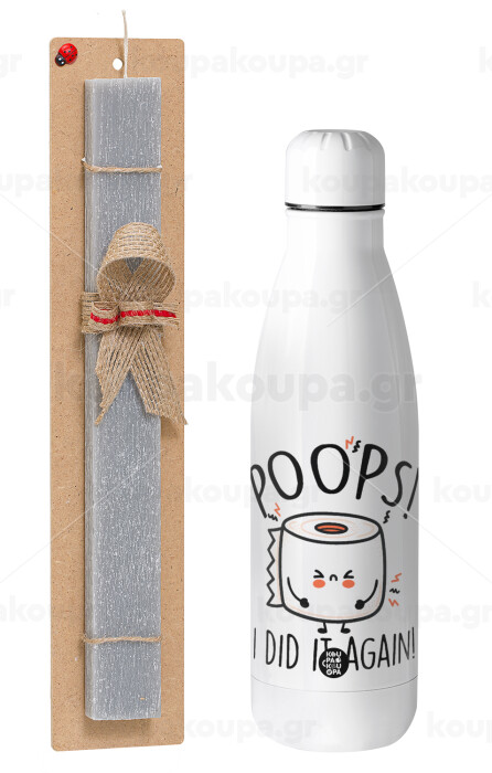 Poops!...I Did It Again, Easter Set, metallic stainless thermos bottle (500ml) & scented flat Easter candle (30cm) (GRAY)