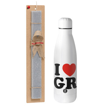 I Love GR, Easter Set, metallic stainless thermos bottle (500ml) & scented flat Easter candle (30cm) (GRAY)