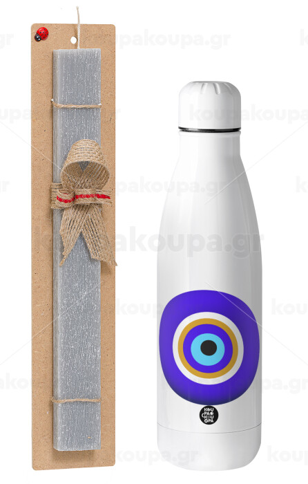 Το μάτι, Easter Set, metallic stainless thermos bottle (500ml) & scented flat Easter candle (30cm) (GRAY)