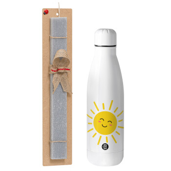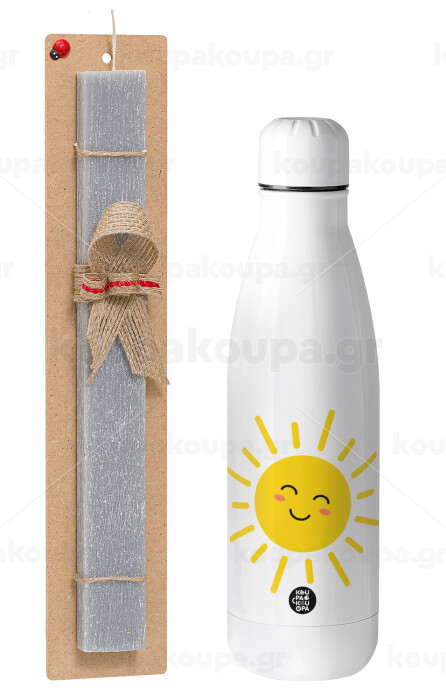 Happy sun, Easter Set, metallic stainless thermos bottle (500ml) & scented flat Easter candle (30cm) (GRAY)
