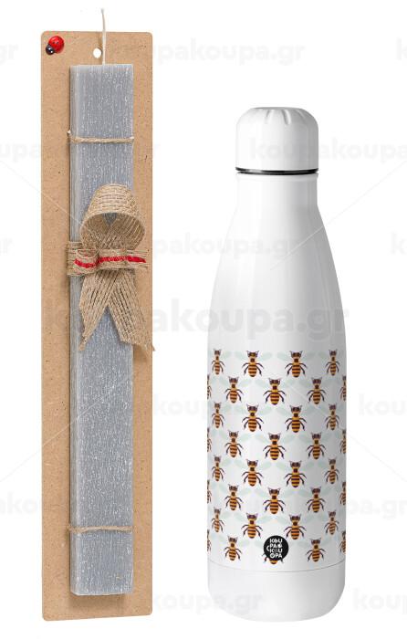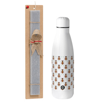 Bee, Easter Set, metallic stainless thermos bottle (500ml) & scented flat Easter candle (30cm) (GRAY)