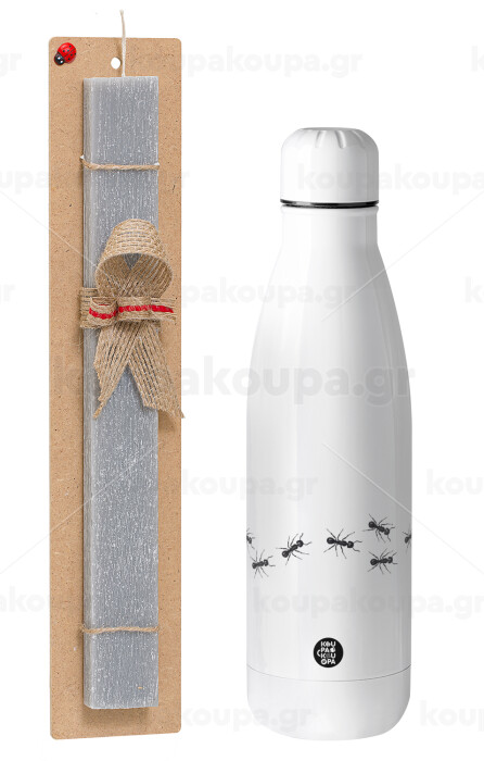 Ants, Easter Set, metallic stainless thermos bottle (500ml) & scented flat Easter candle (30cm) (GRAY)
