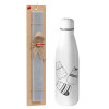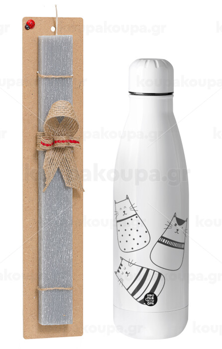 Cute cats, Easter Set, metallic stainless thermos bottle (500ml) & scented flat Easter candle (30cm) (GRAY)