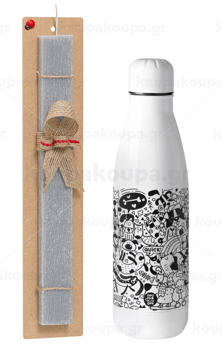 DOG pattern, Easter Set, metallic stainless thermos bottle (500ml) & scented flat Easter candle (30cm) (GRAY)