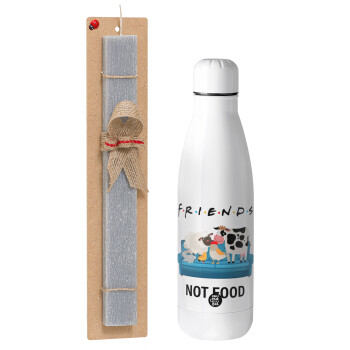 friends, not food, Easter Set, metallic stainless thermos bottle (500ml) & scented flat Easter candle (30cm) (GRAY)