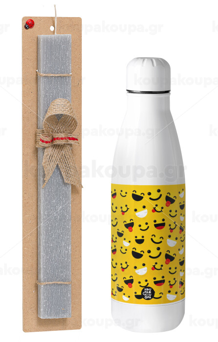 Smilies , Easter Set, metallic stainless thermos bottle (500ml) & scented flat Easter candle (30cm) (GRAY)