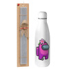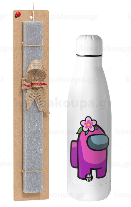 Among US girl, Easter Set, metallic stainless thermos bottle (500ml) & scented flat Easter candle (30cm) (GRAY)