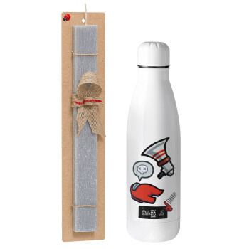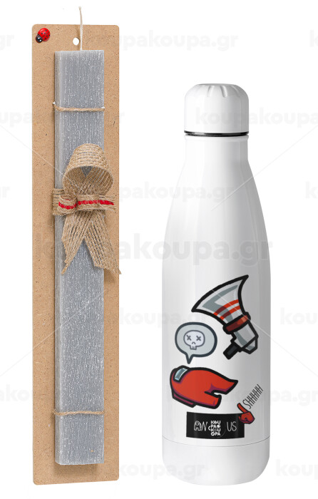 Among US Shhhh!!!, Easter Set, metallic stainless thermos bottle (500ml) & scented flat Easter candle (30cm) (GRAY)