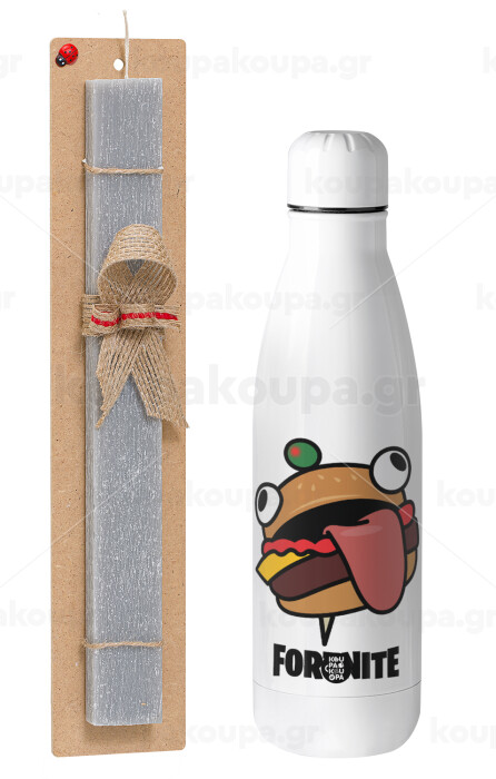 Fortnite Durr Burger, Easter Set, metallic stainless thermos bottle (500ml) & scented flat Easter candle (30cm) (GRAY)