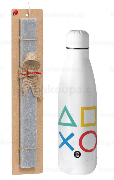 Gaming Symbols, Easter Set, metallic stainless thermos bottle (500ml) & scented flat Easter candle (30cm) (GRAY)