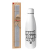 GTA (grand theft auto), Easter Set, metallic stainless thermos bottle (500ml) & scented flat Easter candle (30cm) (GRAY)