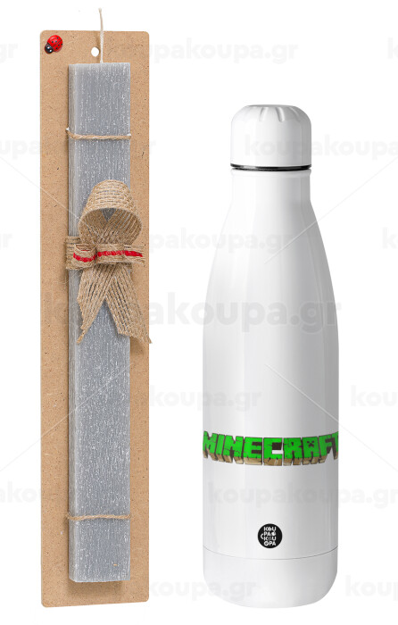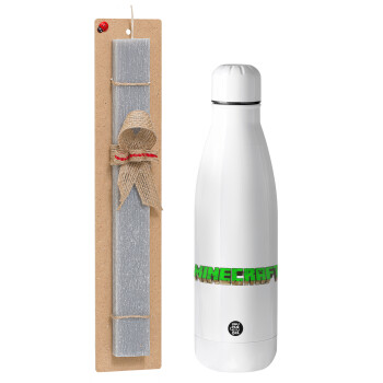 Minecraft logo green, Easter Set, metallic stainless thermos bottle (500ml) & scented flat Easter candle (30cm) (GRAY)
