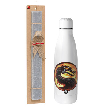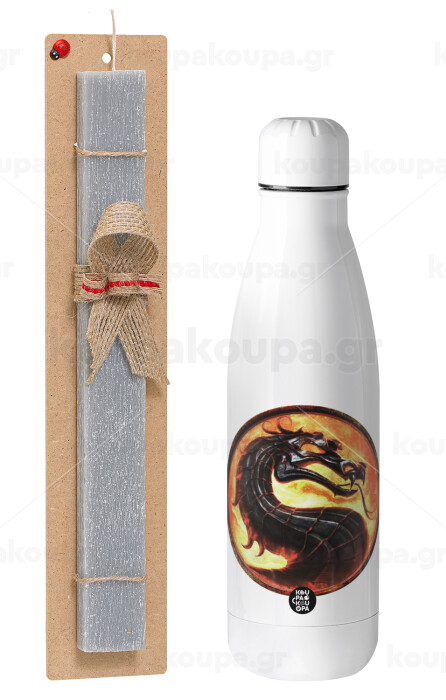 Mortal Kombat, Easter Set, metallic stainless thermos bottle (500ml) & scented flat Easter candle (30cm) (GRAY)