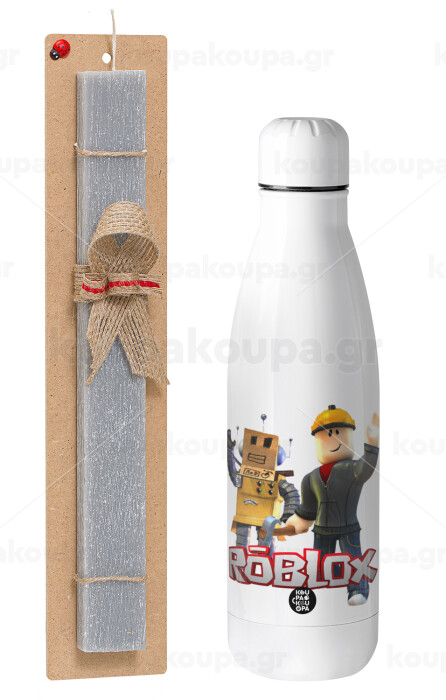 Roblox, Easter Set, metallic stainless thermos bottle (500ml) & scented flat Easter candle (30cm) (GRAY)