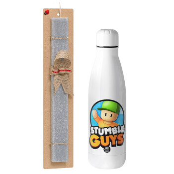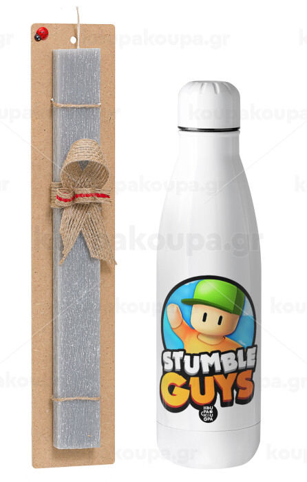 Stumble Guys, Easter Set, metallic stainless thermos bottle (500ml) & scented flat Easter candle (30cm) (GRAY)