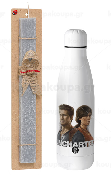 Uncharted, Easter Set, metallic stainless thermos bottle (500ml) & scented flat Easter candle (30cm) (GRAY)