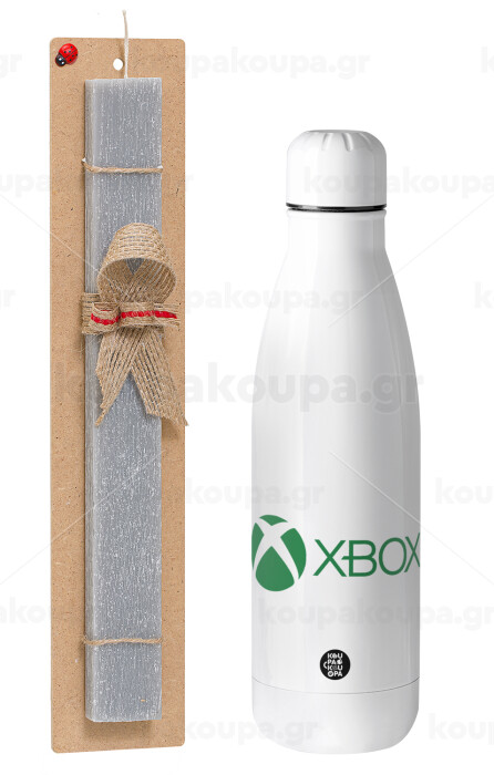 xbox, Easter Set, metallic stainless thermos bottle (500ml) & scented flat Easter candle (30cm) (GRAY)