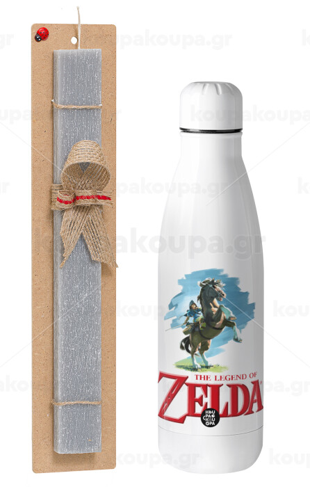 Zelda, Easter Set, metallic stainless thermos bottle (500ml) & scented flat Easter candle (30cm) (GRAY)