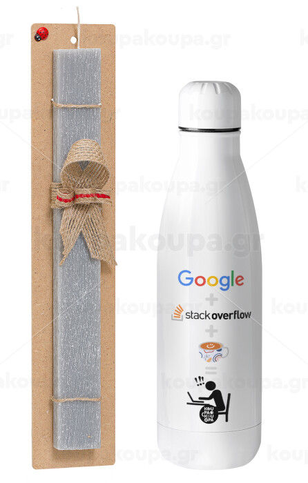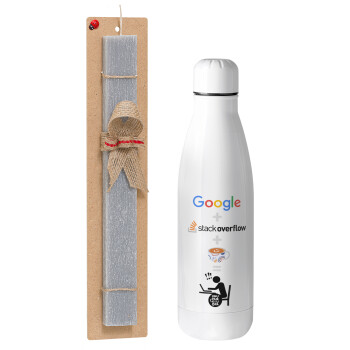 Google + Stack overflow + Coffee, Easter Set, metallic stainless thermos bottle (500ml) & scented flat Easter candle (30cm) (GRAY)