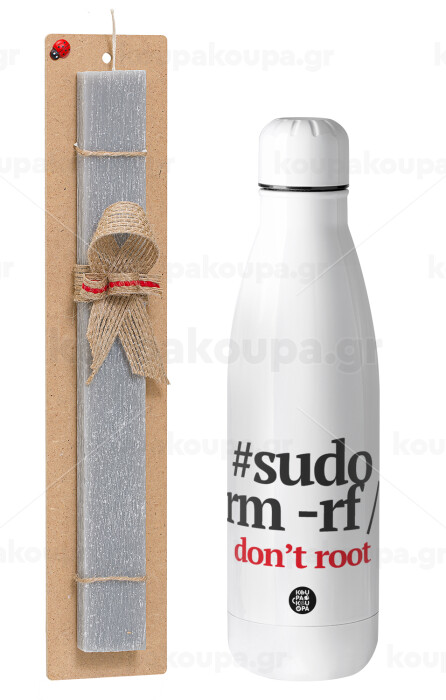 Sudo RM, Easter Set, metallic stainless thermos bottle (500ml) & scented flat Easter candle (30cm) (GRAY)