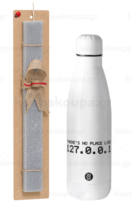 there's no place like 127.0.0.1, Easter Set, metallic stainless thermos bottle (500ml) & scented flat Easter candle (30cm) (GRAY)