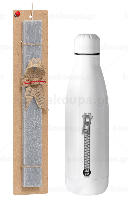 Zipper, Easter Set, metallic stainless thermos bottle (500ml) & scented flat Easter candle (30cm) (GRAY)