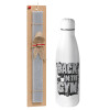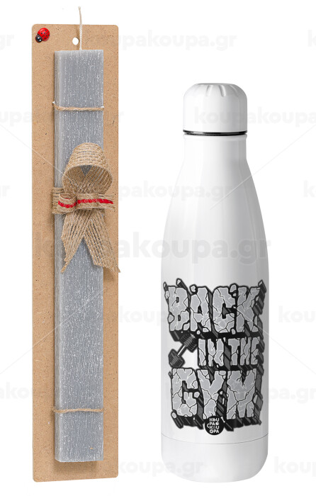 Back in the GYM, Easter Set, metallic stainless thermos bottle (500ml) & scented flat Easter candle (30cm) (GRAY)