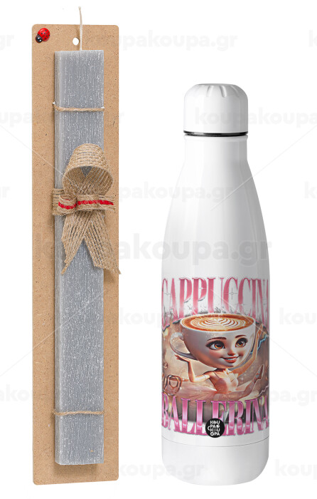 BALLERINA CAPUCHINA FUNK, Easter Set, metallic stainless thermos bottle (500ml) & scented flat Easter candle (30cm) (GRAY)