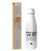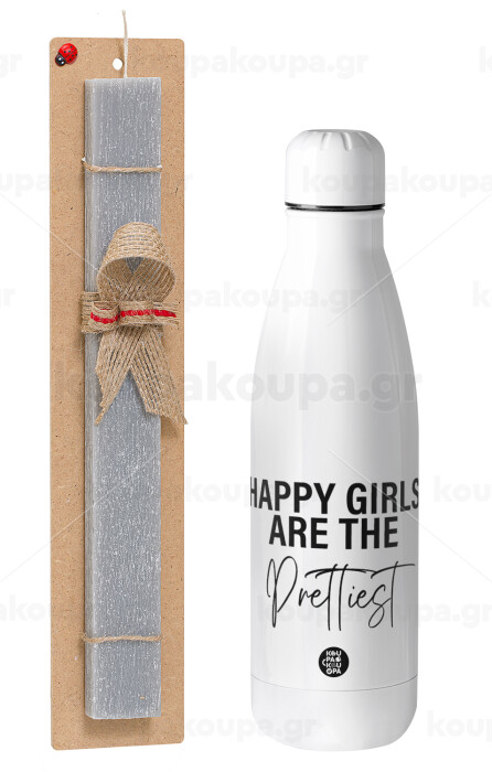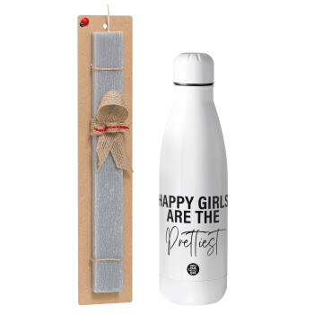 Happy girls are the prettiest, Easter Set, metallic stainless thermos bottle (500ml) & scented flat Easter candle (30cm) (GRAY)