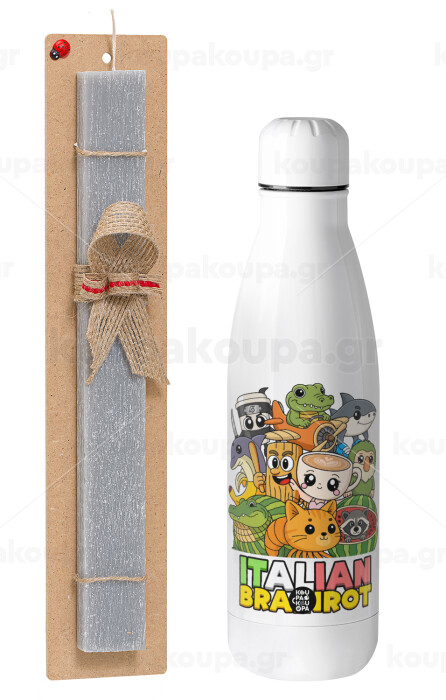 Italian Brainrot friends, Easter Set, metallic stainless thermos bottle (500ml) & scented flat Easter candle (30cm) (GRAY)