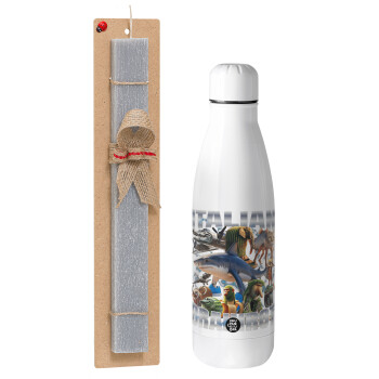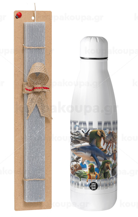 Italian Brainrot, Easter Set, metallic stainless thermos bottle (500ml) & scented flat Easter candle (30cm) (GRAY)