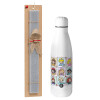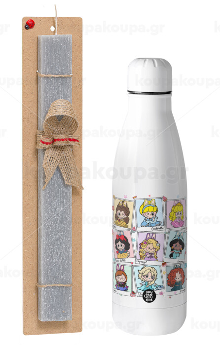 Labubu characters, Easter Set, metallic stainless thermos bottle (500ml) & scented flat Easter candle (30cm) (GRAY)
