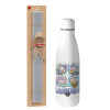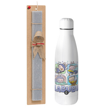 Labubu, Easter Set, metallic stainless thermos bottle (500ml) & scented flat Easter candle (30cm) (GRAY)