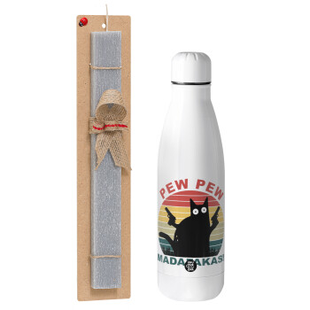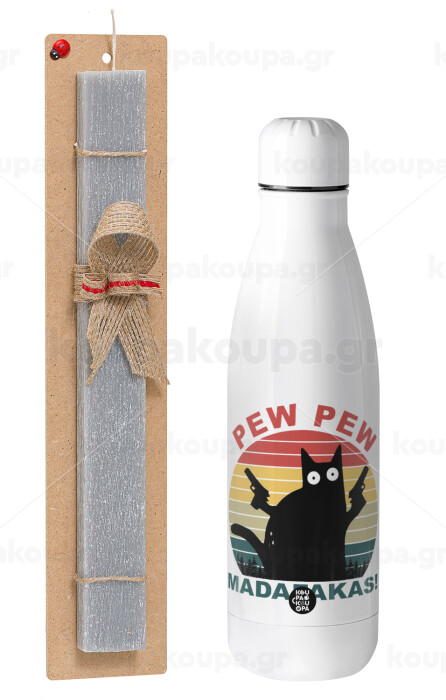 PEW PEW madafakas, Easter Set, metallic stainless thermos bottle (500ml) & scented flat Easter candle (30cm) (GRAY)