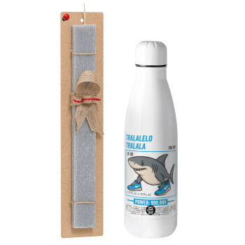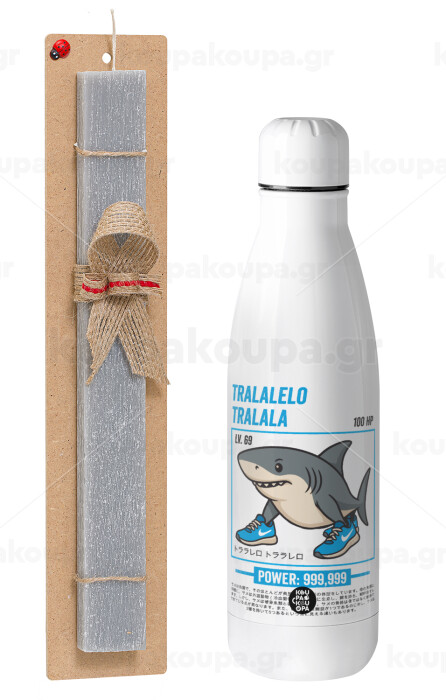 Tralalero Tralala, Easter Set, metallic stainless thermos bottle (500ml) & scented flat Easter candle (30cm) (GRAY)