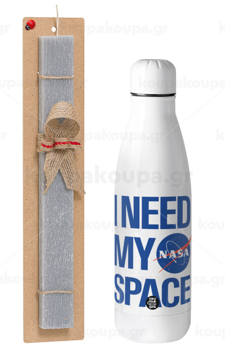 I need my space, Easter Set, metallic stainless thermos bottle (500ml) & scented flat Easter candle (30cm) (GRAY)