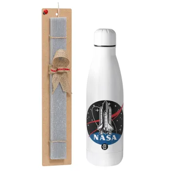 NASA Badge, Easter Set, metallic stainless thermos bottle (500ml) & scented flat Easter candle (30cm) (GRAY)