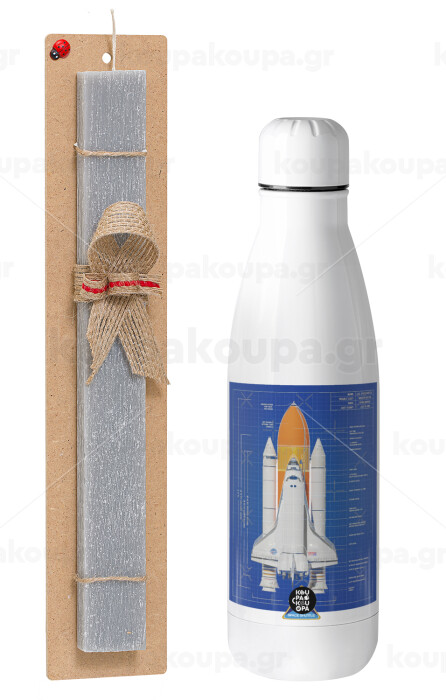 Nasa Space Shuttle, Easter Set, metallic stainless thermos bottle (500ml) & scented flat Easter candle (30cm) (GRAY)