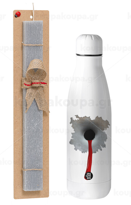 Bullet holes, Easter Set, metallic stainless thermos bottle (500ml) & scented flat Easter candle (30cm) (GRAY)