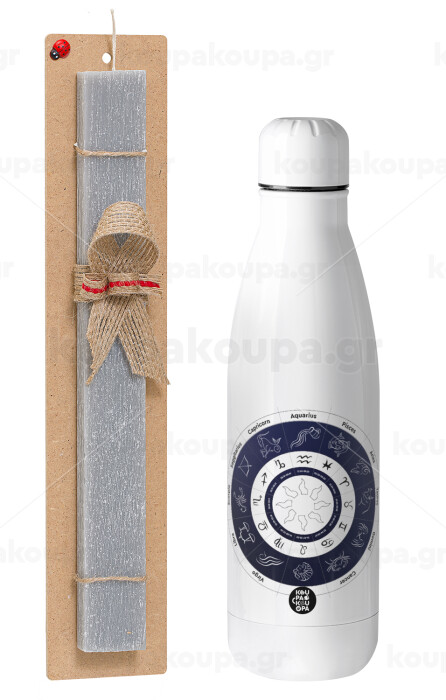 Ζωδιακός κύκλος, Easter Set, metallic stainless thermos bottle (500ml) & scented flat Easter candle (30cm) (GRAY)